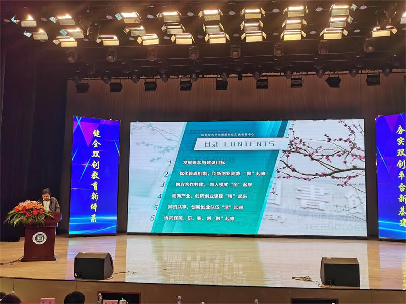 2018年首批立项的24所“省级大学生创新创业实践教育中心建设点”高校依次代表发言,汇报本校在推进省级大学生创新创业实践教育中心建设点建设工作中的成果和经验,并以现场实时打分的方式开展互评。作为7所首批立项的高职院校之一,我校党委委员、教务处处长、创新创业教育学院院长吉智从发展理念、建设目标、机制保障、工作成效等方面代表学校作了工作汇报。三年来,我校省级大学生创新创业实践教育中心遵循“立德树人、提质创优、服务工业”的发展理念,取得显著的建设成效,构建了“资源-课程-实践-科转-竞赛”全面覆盖的创新创业教育生态,积极推进专创融合、赛练融合、思创融合,打造“面上覆盖、多层推进、重点突破”的课程体系,并连续三年组织开展创新创业训练营等主题活动。在第五届与第六届“互联网+”创新创业大赛中,获国赛入围总决赛奖1项、省赛一等奖4项、二等奖6项,获省赛优秀组织奖3项。涌现出了徐州市返乡创业标兵刘耀中等一批创业先进典型,创新创业工作多次获得国家级和省市媒体宣传报道。通过互评打分,我校最终成绩位列全省高职院校第4位。