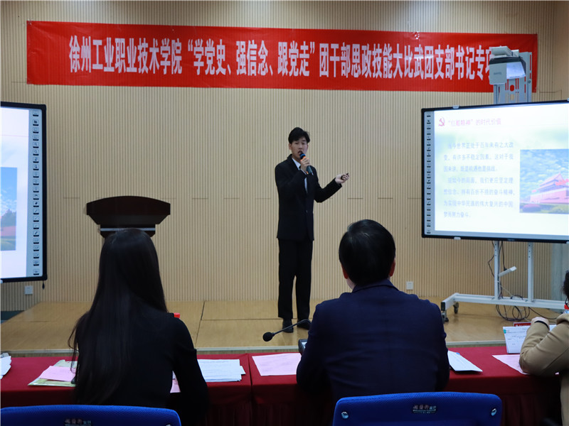 为深入学习贯彻习近平新时代中国特色社会主义思想,引导广大团员青年投身思想政治理论学习,4月15日,校团委在图书馆教师发展中心举办了徐州工业职业技术学院“学党史、强信念、跟党走”江苏高校百校万名团干部思政技能大比武校级决赛。校党委宣传部、学工部、校团委、马克思主义学院相关负责人及各二级学院团总支书记、学生代表出席本次大赛。