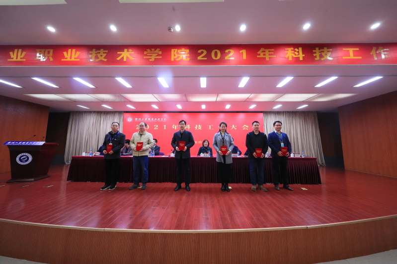 党委副书记李红宣读了表彰决定。会议表彰了“科技工作先进集体”“科技进步奖”“科技工作先进个人”。学校领导和党委委员为获奖的集体、团队和个人颁奖。