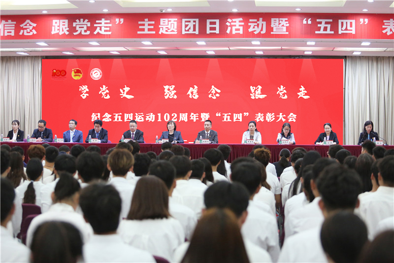 为深入推进党史学习教育、弘扬五四精神,5月8下午,我校在图书馆报告厅成功举办2021年“学党史、强信念、跟党走”主题团日暨五四表彰大会。党委副书记李红、副院长鲍桂楠出席活动。学院党群部门主要负责人,各二级学院党总支书记、副书记、团总支书记,青年教师代表和部分受表彰的师生代表共同参加活动。校团委书记安莹主持活动。