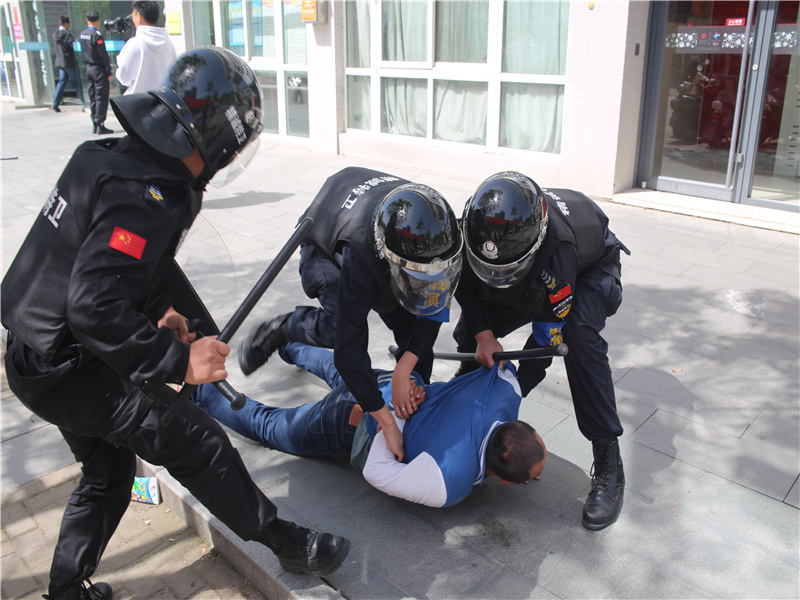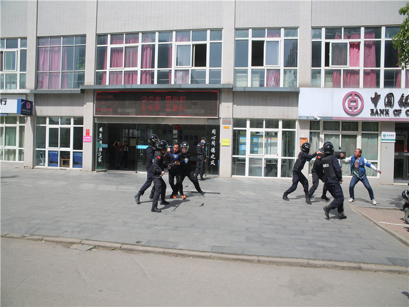 为进一步提高学校反恐防暴工作的应对能力,及时有效地预防和控制各种暴恐事件的发生。5月8日上午,校保卫处联合徐州市公安局鼓楼分局政保大队、九里派出所、徐州精诚特卫组织开展反恐防暴专项演练。徐州市公安局鼓楼分局、九里派出所部分干警来校进行现场指导,副院长朱作付、保卫处全体工作人员、保安队员参加活动。