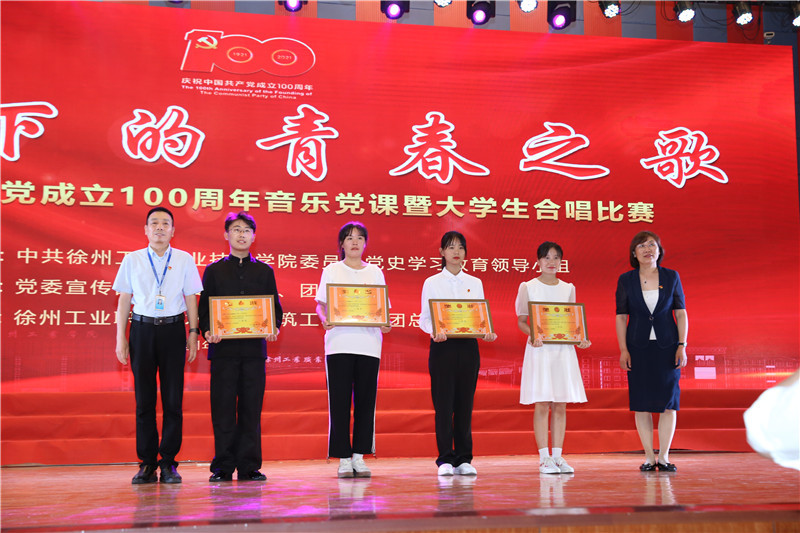 期间,穿插进行了二级学院合唱比赛。七个二级学院的四百余名学生,用一首首歌曲表达了对中国共产党百年华诞的深深祝福。每个节目开始前,主持人都会动情地介绍。《歌唱祖国》唱出了国家的强盛、民族的豪情;《唱支山歌给党听》唱出了对党的无比热爱和坚定信心跟党走的决心;《在灿烂的阳光下》唱出了青年学子的蓬勃朝气、昂扬锐气和浩然正气;《国家》唱出了中国共产党的千秋伟业,与百年风华;《天耀中华》唱出了不屈不挠、自强不息的民族精神;《不忘初心》唱出了对党领导国家取得伟大成就的赞美和对美好明天的憧憬,也展现了广大师生无限的爱国热情和独特艺术创造力;由我校各民族大学生组成的合唱团用美声、摇滚、通俗等不同唱法精彩演绎了《妈妈教我一支歌》,这支歌鼓舞我们建设新生活,这支歌世世代代永不落。活动最后,现场师生全体起立共同高歌《没有共产党就没有新中国》,感人的歌声唱出了每一位徐工职院人炽热的爱国爱党情怀,激昂的旋律在体育馆上空久久回荡。经过激烈角逐,信息工程学院、建筑工程学院、化学工程学院在此次比赛中脱颖而出,荣获一等奖。
