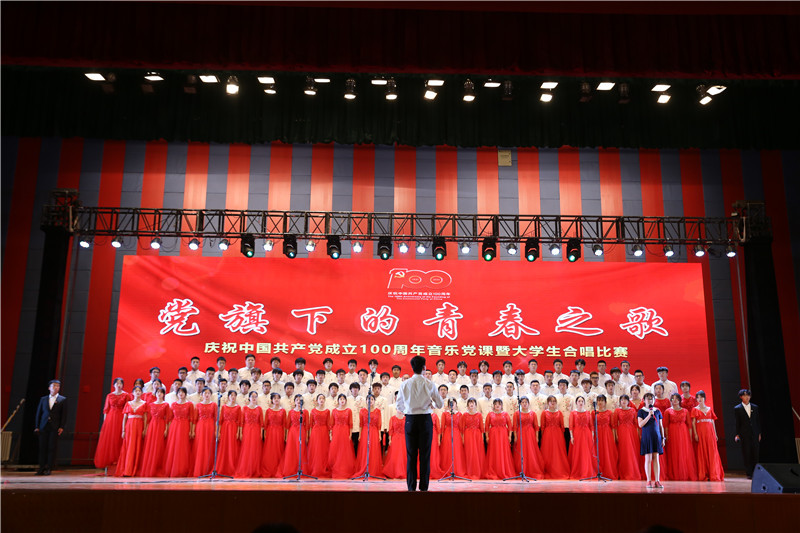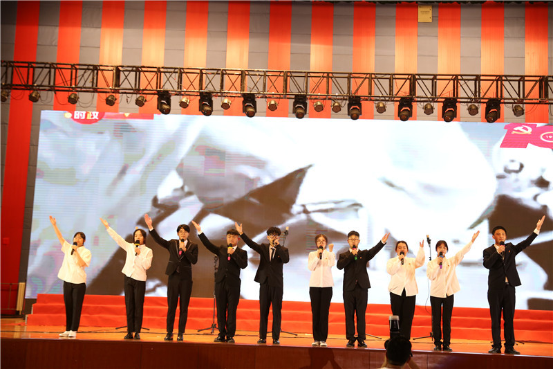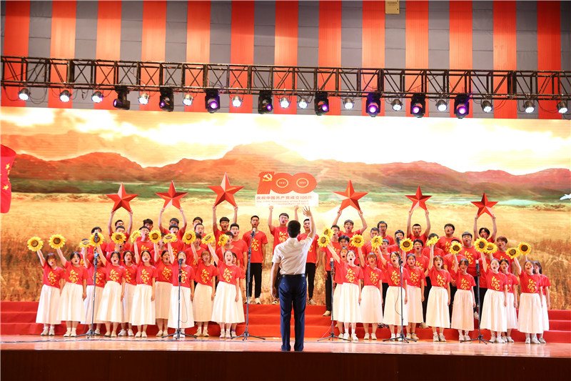 为深化党史学习教育效果,创新党史学习教育形式,6月9日晚,我校在体育馆举行“党旗下的青春之歌”庆祝建党100周年音乐党课暨大学生合唱比赛。全体校领导出席,校党史学习教育领导小组成员、各二级学院党总支副书记、团总支书记和学生代表二千余人参加了活动。