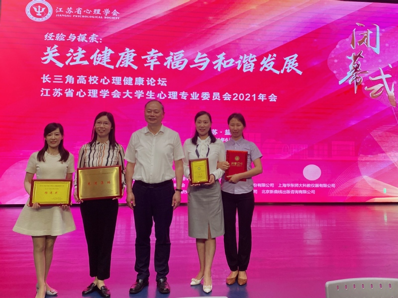 6月9-11日,长三角高校心理健康论坛暨江苏省心理学会大学生心理专业委员会年会在盐城召开。经江苏省各大心理健康教育研究中心(基地)初评、公示、推荐,省心理学会大学生心理专业委员会审议和省心理学会审定,我校荣获2019-2021年度心理健康教育工作“推进奖”。