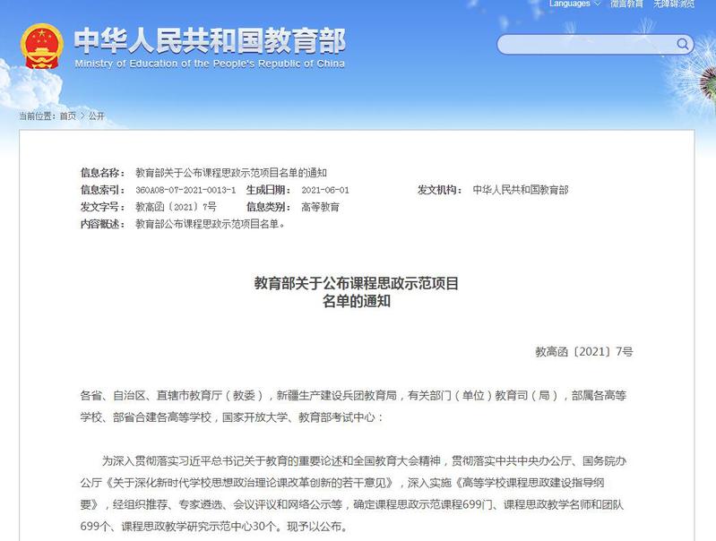 本次课程思政示范项目建设工作由国家教育部组织,面向职业教育、普通本科教育、研究生教育和继续教育。本次评选中全国共确定职业教育课程思政示范课程200门。