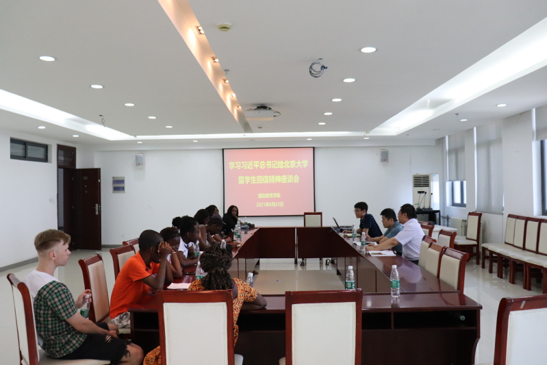 6月23日下午,国际教育学院召开教师和在校留学生座谈会,就习近平总书记6月21日给北京大学留学生的回信进行学习和研讨。会座谈上师生们深受鼓舞,畅谈学习感受。