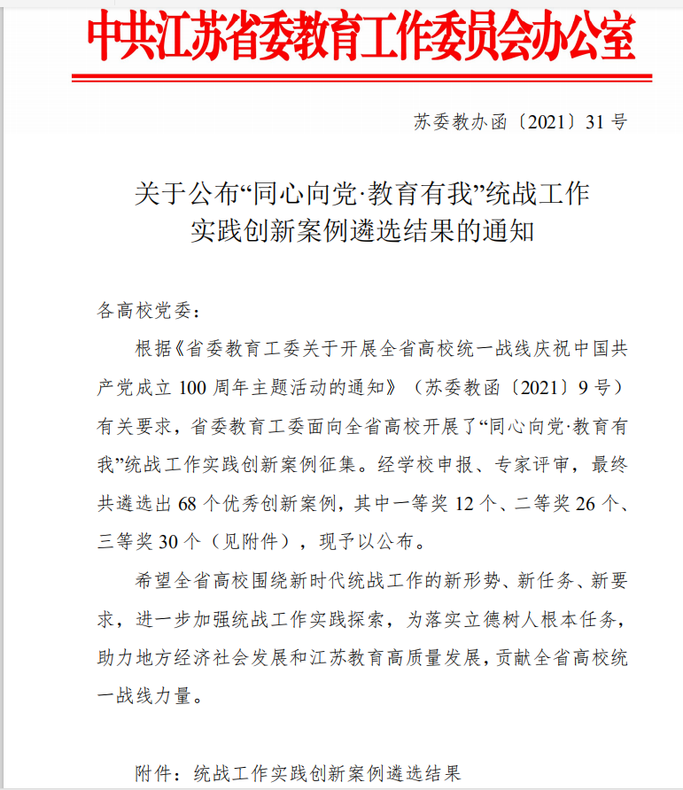 为庆祝中国共产党成立100 周年,深入学习贯彻习近平新时代中国特色社会主义思想,回顾百年来党领导的统一战线凝心聚力、铿锵前行的历史,激励和动员全省高校统一战线成员听党话、跟党走,坚定合作初心,广泛凝聚人心,增强育人信心,省委教育工委在全省高校统一战线开展“同心向党·教育有我”系列主题活动。