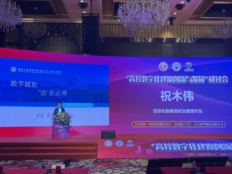 10月17日,由中国高等教育学会,太原理工大学,正方软件股份有限公司共同主办的“高校数字化建设创新与发展”研计会在山西太原召开,我校党委书记祝木伟受邀出席会议,并在会上作交流发言。
