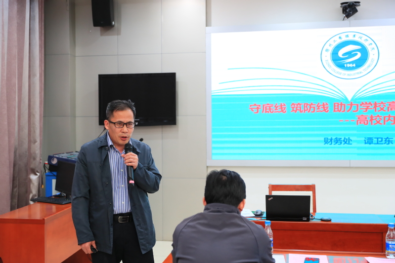 本次培训包含纪检监察干部培训和巡察工作业务培训两个专题。在纪检监察干部培训专题中,纪委委员、财务处处长谭卫东作《守底线 筑防线 助力学校高质量发展---高校内控建设的思考》主题讲座,讲解了内控建设的背景、内控的基本内容,分析了学校内控建设的现状,提出了内控建设的改进措施。