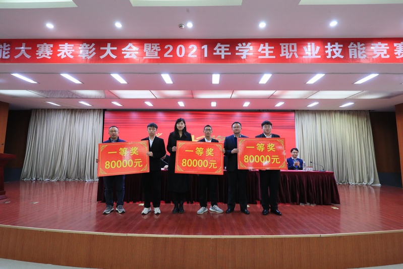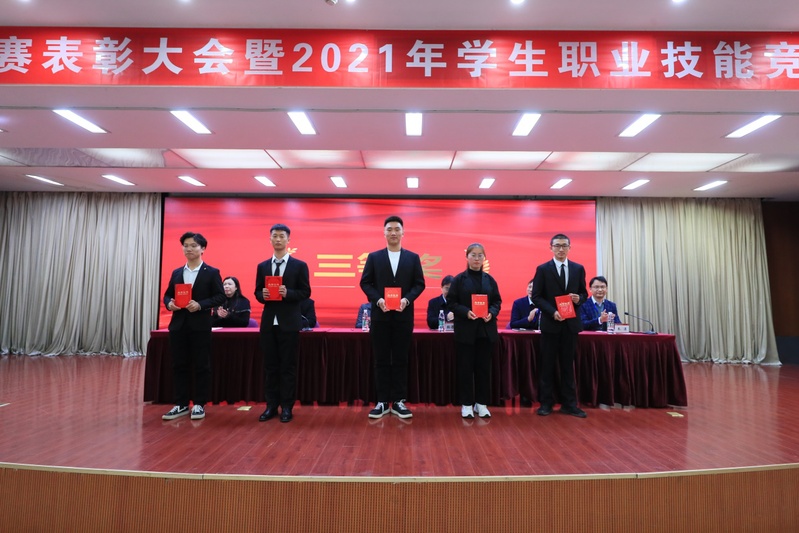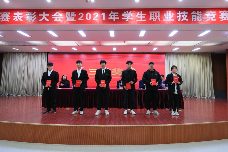 党委副书记李红首先宣读了中华人民共和国第一届职业技能大赛获奖名单、2021年全国职业技能大赛获奖名单、2021年江苏省职业院校技能大赛获奖名单。随后与会领导为获奖个人和集体颁奖。指导教师代表机电工程学院卓自明老师、信息工程学院物联网技术192班芦佳琦同学、裁判员代表汽车工程学院李美凤老师先后作了发言。
