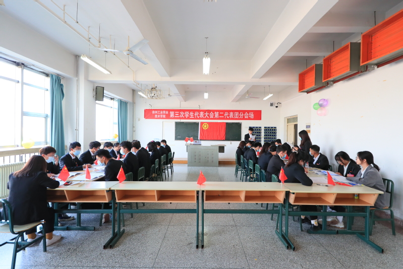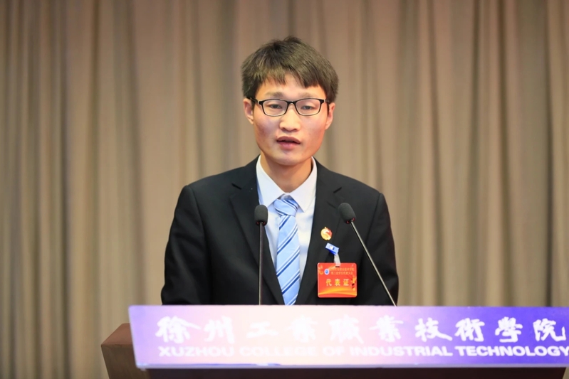 上午10时50分,大会在西门报告厅举行学代表会议。第二届学生会执行主席陈辽宁同学代表徐州工业职业技术学院第二届学生会做题为《共赴百年新征程 青春向党谱华章,为建设国内一流、海内外有影响的服务区域型高水平本科职业学校贡献青春力量》的工作报告。