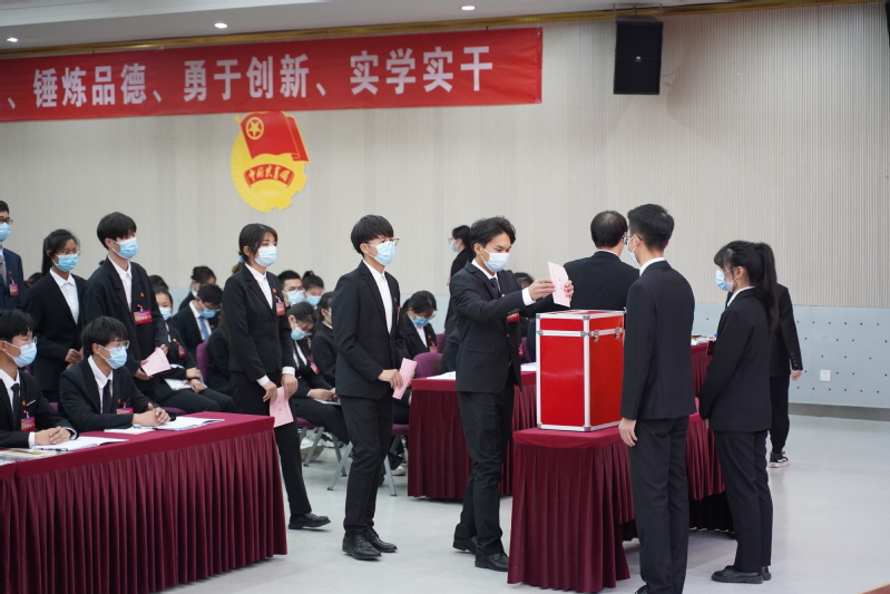 随后,校学生会执行主席崔雅茹宣读了题为《不忘初心跟党走 匠心筑梦新征程,为建设国内一流、海内外有影响的服务区域型高水平本科职业学校贡献青春力量》的致全校共青团、团学干部、青年朋友的倡议书。