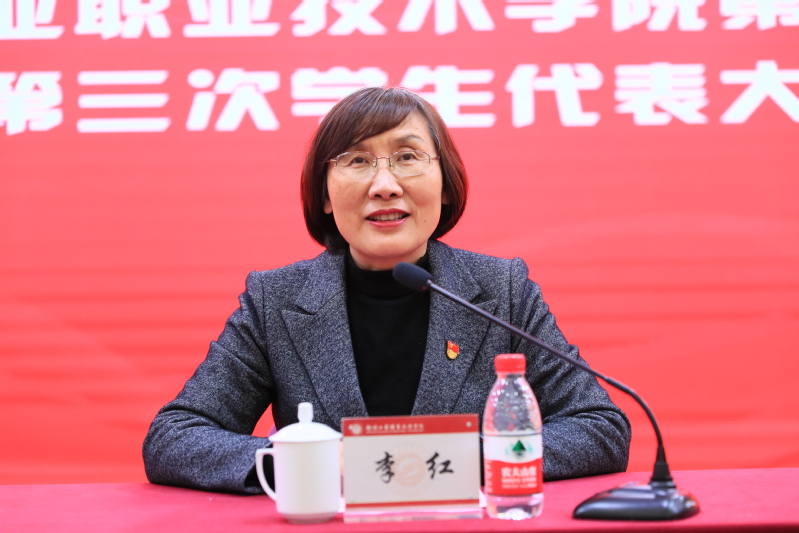 校党委副书记李红代表学校党委讲话。李书记首先对大会的召开表示热烈的祝贺,向长期以来关心和支持我校团学工作的团省委、团市委领导和兄弟院校的团学干部表示衷心的感谢,向全校1万3千余名团员青年致以亲切的问候。李书记充分肯定了全校各级团学组织在社会实践、志愿服务、科技创新、疫情防控等方面取得的成绩,并提出三点希望:一是希望全校各级团组织认真学习贯彻习近平总书记关于青年工作的重要思想,学好“必修课”,答好“新答卷”,主动融入学校人才培养大局,在服务人才培养中提升大局贡献度,开启共青团工作新局面;二是希望全校团员青年坚定信念跟党走,弘扬“自强、务实、协力、争先”的学校精神,切实做到奋斗荣校,永远胸怀“技能报国”之志,在实践中练就过硬本领,争做技能报国、爱校荣校的新青年,早日成长为技术能手、行业精英、能工巧匠、大国工匠;三是希望全校各级党组织强化保障支持,完善党建带团建机制,充分信任青年、热情关心青年、严格要求青年,进一步加强对团干部的教育和培养,构建党建带团建的新格局。李书记强调,在实现第二个百年奋斗目标新的赶考之路上,全校团员青年要牢记青春使命,把握青春时光,以青春之我、奋斗之我,承担新时代赋予的使命,为把我校建设成为国内一流、海内外有影响的服务区域型高水平本科职业学校贡献青春力量。