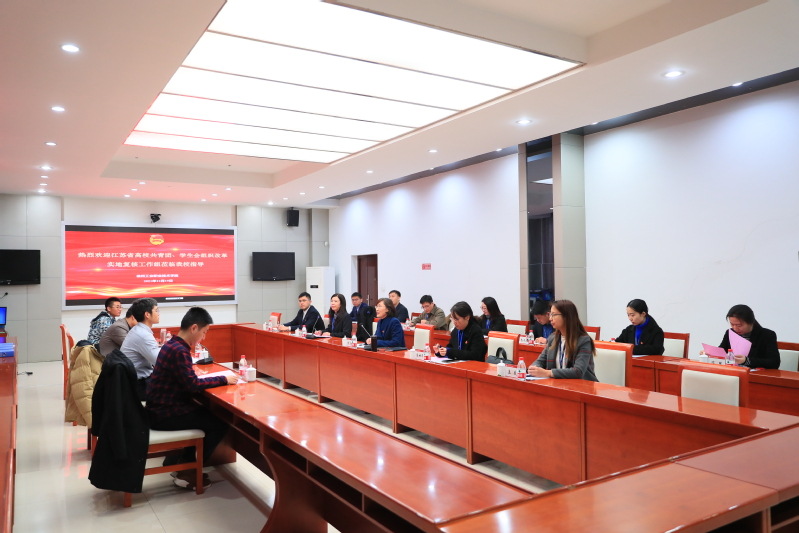 党委副书记李红代表学校党委对工作组一行的到来表示热烈欢迎,对团省委、省学联长期以来对我校团学工作的指导、支持表示衷心感谢。李红书记从学校发展历程、思政工作、育人成果、共青团工作等方面进行了简要介绍,并表示,学校党委高度重视共青团工作,将进一步加强党建带团建,注重面向基层,以学生喜闻乐见的方式引领青年,不断扎实推进共青团和学生会组织改革落地。