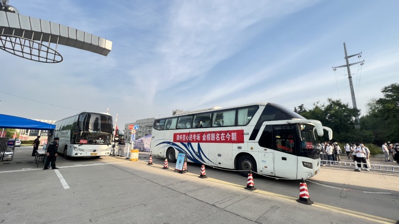 考试当天,学校为全体考生提供“考试直通车”服务,选拔精干教师组成送考队伍,“一对一”包干车辆带队送考。副院长鲍桂楠亲临送考现场,鼓励同学们放松心情,沉着应战。短短30分钟内,送考工作人员各司其职,高效协作,完成了全体考生的点名、校核、测温等多道程序,引导考生顺利登车,满怀喜悦之情、信心满满奔赴人生的考场,接受国家的又一次挑选。