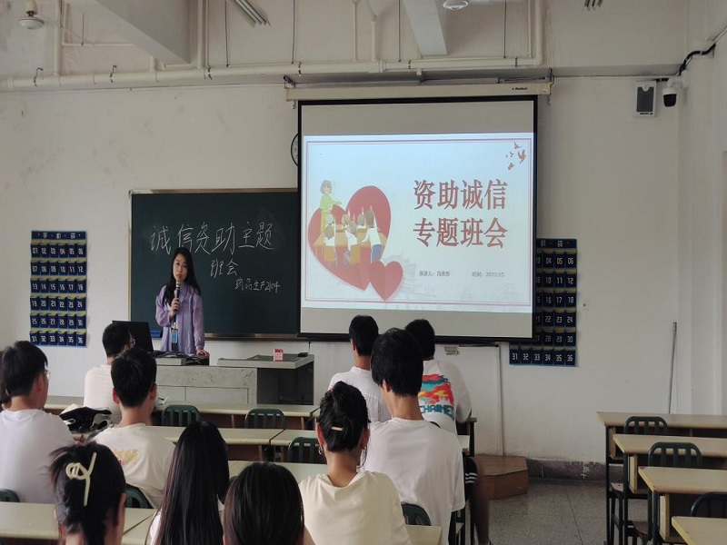 诚信教育,入脑入心。各学院以班级为单位统一召开资助诚信主题教育班会,各班级通过PPT讲解、视频播放、互动等环节,强化学生对诚信的认识和理解,让学生们充分认识到诚实守信是一种美德,牢固树立“守信光荣、失信可耻”的信用意识和道德观念。