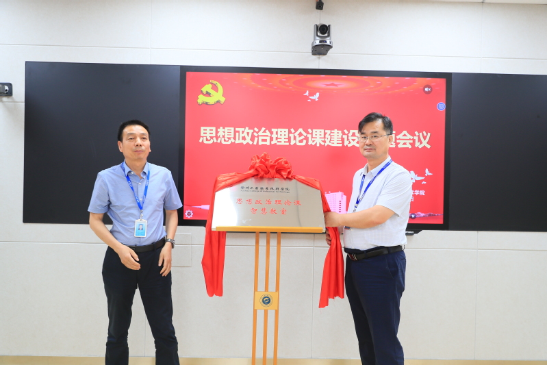 副院长鲍桂楠、副院长张芳儒为思想政治理论课智慧教室揭牌。