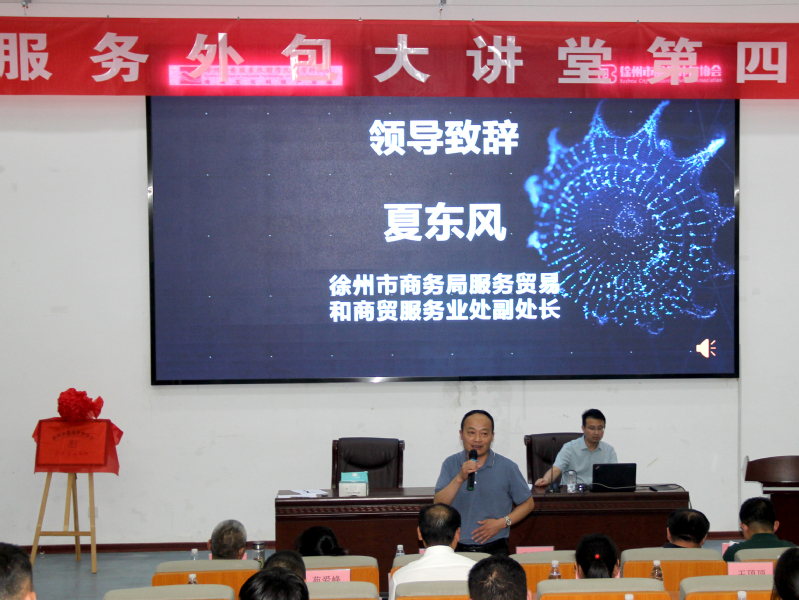 徐州市商务局服务贸易和商贸服务业处副处长夏东风在致辞中介绍了近年来徐州市服务外包产业丰硕的发展成果,呼吁更多的企业了解、认识徐州市优秀的服务外包政策,积极投身服务外包事业,助推徐州市服务外包产业高质量发展。