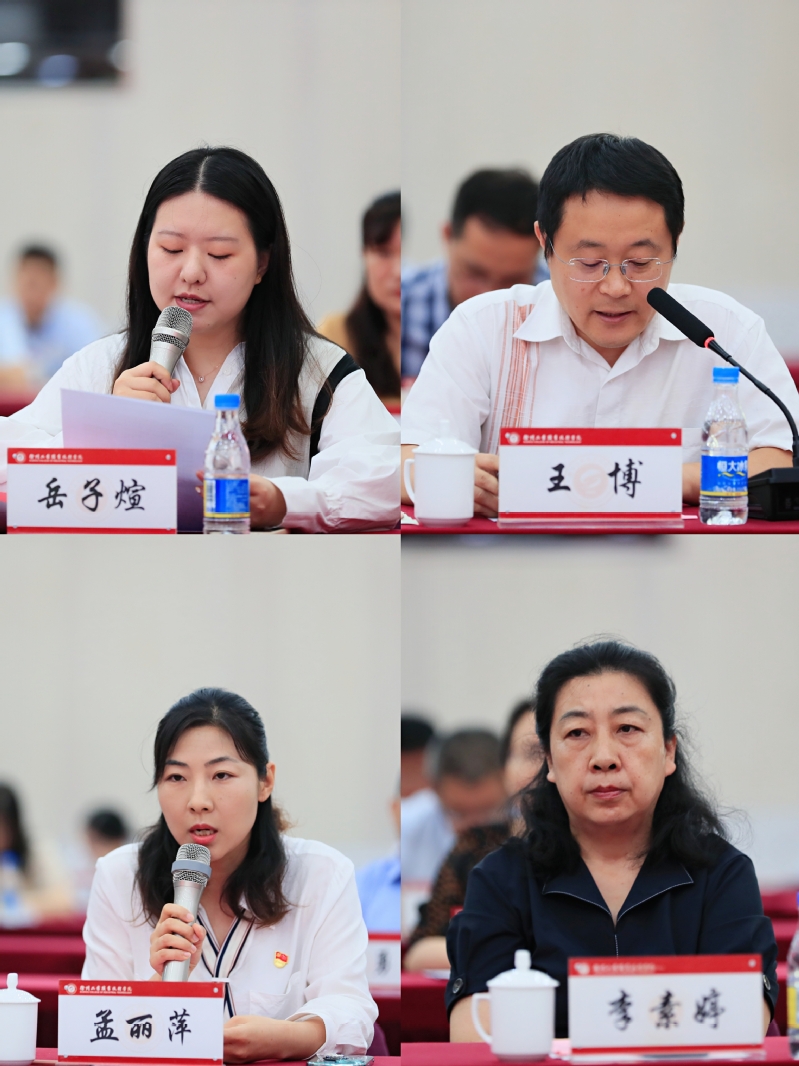 在交流发言环节,优秀共产党员代表岳子煊、优秀党务工作者代表王博、先进党支部代表孟丽萍、先进党总支代表李素婷四位同志先后发言。他们结合自身和本部门工作实际,从强化党组织政治功能、促进党建与业务工作深度融合、开展大学生思想政治教育、推进课程思政建设、潜心教学科研工作等方面进行了交流。