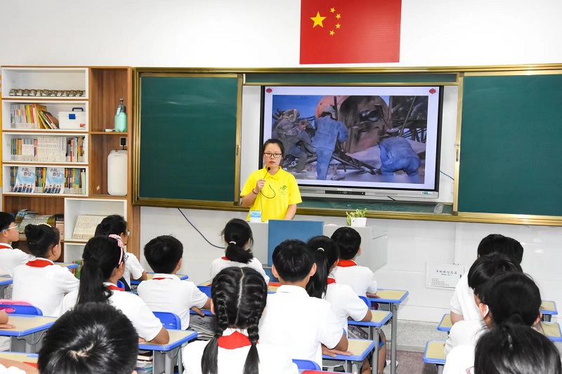 纸上得来终觉浅,绝知此事要躬行。实践团员来到万科城民主小学,将学到的党史红色故事,向小学生讲述。从新民主主义革命时期的“十人桥”讲到社会主义革命和建设时期的“铁人王进喜”,从改革开放和社会主义现代化建设新时期的“小岗村”讲到中国特色社会主义新时代的“钟南山”。让小学生铭记历史,传承红色基因。