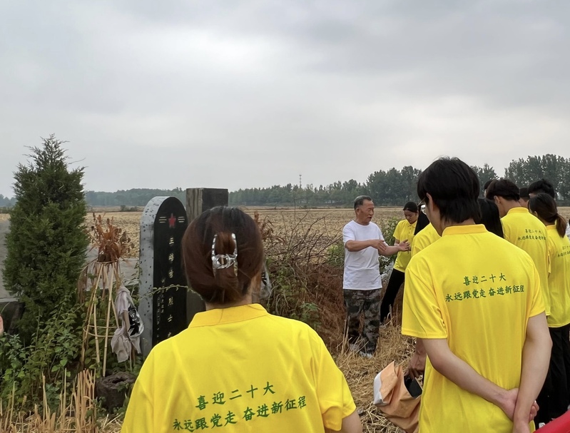 参观红色景点,筑牢信念根基。6月25日,为了缅怀革命先烈,传承和弘扬中华民族不朽的爱国精神,社会实践团分别去了“中国劳工殉职处—万人坑”、“利国矿山中国劳工殉职纪念塔”、“烈士王培基墓碑”等地。墓碑前,王培基先生的侄子王振君先生感慨道,“王培基参加的铁道游击队在微山岛处与日伪军英勇作战,他在这场战斗中击毙日寇多人,右手被打中他就用左手向敌人射击,鲜血遮住了双眼,他用衣袖擦去,继续战斗,终因失血过多在战斗中壮烈牺牲。”队员们听后无不深受感动,纷纷向为新中国英勇献身的烈士默哀并献花,随后,党员师生重温入党誓词,大家慷慨激昂、神态坚定,誓词掷地有声。