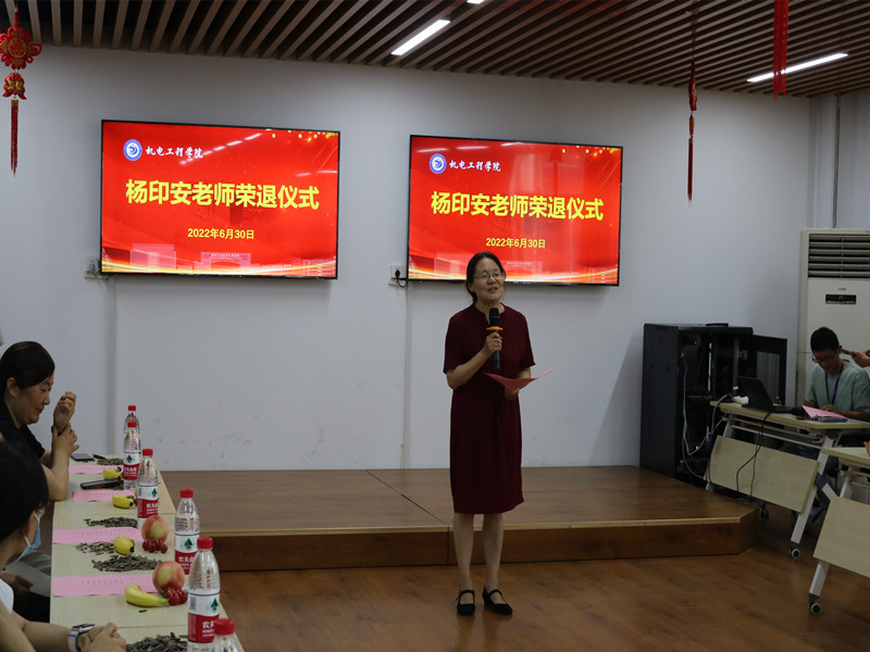 6月30日,机电工程学院于B16-302为杨印安老师举办了温馨隆重的荣退仪式,校党委委员、副院长鲍桂楠,校工会主席刘新良、机电学院教师及其他部门相关教师参加了杨印安老师荣退仪式。仪式由机电工程学院党总支书记王敏主持。