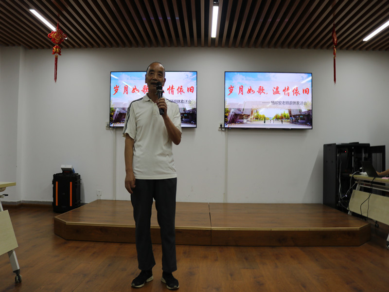 杨印安老师发表感言,他从1985年毕业后来到徐州化工学校工作谈起,见证了学校从中专到大专,再到全国双高校的发展历程,见证了机电学院从化机教研组室到机电工程系,到机械工程系,到机电工程技术学院,再到如今的机电工程学院发展变化,他为学校的发展进步感到欣喜,对学校的关心关怀表达感恩,并衷心希望学校能发展地越来越好,未来他将继续关心学院发展,继续发挥光和热。
