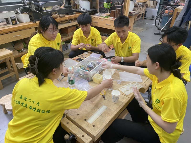 一套高分子材料红色文创产品,弘扬专业特色工匠精神。作为徐州工业职业技术学院特色专业高分子材料工程技术的青年学子,运用专业特长,结合红色文化,设计并制作出具有红色特色的高分子材料文创作品。他们结合树脂材料的特点,按照严格比例调配成最终的树脂胶,同时在浇筑模型上分别添加“不忘初心、牢记使命”、“喜迎二十大,永远跟党走,奋进新征程”等红色文字在作品上,经过一遍遍的仔细打磨,形成最终的作品。这一系列的过程无不体现着材料学子们运用专业所学展现出严谨认真、精益求精、追求完美的工匠精神,切实提高青年学子们社会化能力。