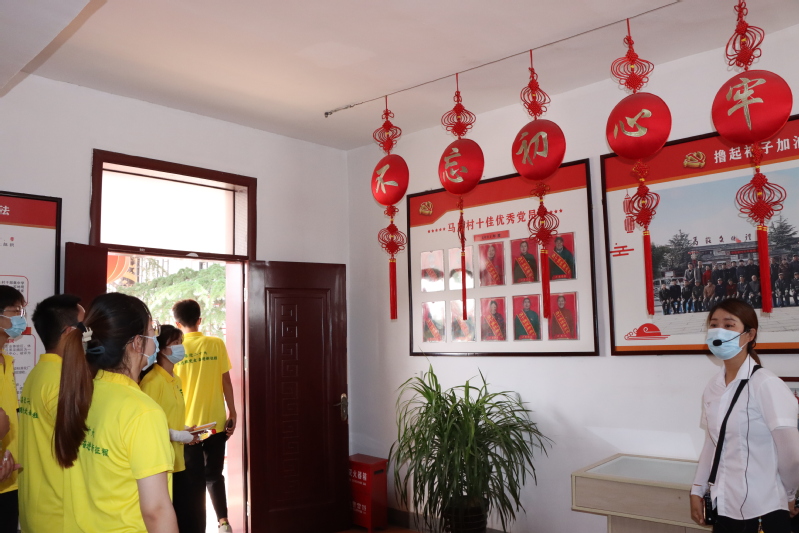 随后,实践团成员来到马庄村。多年来,马庄村坚持党建引领、文化兴村、产业旺村,几经转型逐渐走出了乡村振兴康庄大道。实践团先后参观了马庄村村史馆、支部党员活动室、香包制作室、马庄村文化礼堂等,了解马庄村的历史沿革、党建工作、民俗文化等情况,深刻感悟强基层党建在乡村振兴中所发挥的重要作用。