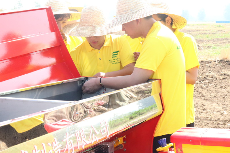 学习专业知识,夯实机械专业基础。“农业在改变,技术要跟上,现代农业的发展的未来是智慧农场,农机装备国产化现代化在这个过程中将发挥重要作用。”徐州市农业机械化总工程师陈文龙针对农业机械为参与实践活动的同学们上了精彩一课。陈文龙总工程师还带领同学们学习农业机械基本操作知识、基本故障排查与维修知识,对于当前农业机械化过程中遇到的重难点问题与实践团师生进行讨论沟通。王敏表示机械制造与自动化专业的学生,书本上的机械知识在实践应用中还比较欠缺,没有深入的实践认识,因此从去年开始机电学院便开始有意识地与地方共建暑期社会实践基地,通过到实际种植场景学习相关机械知识,极大提升了同学们对于农业机械的认识。
