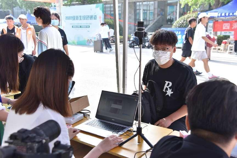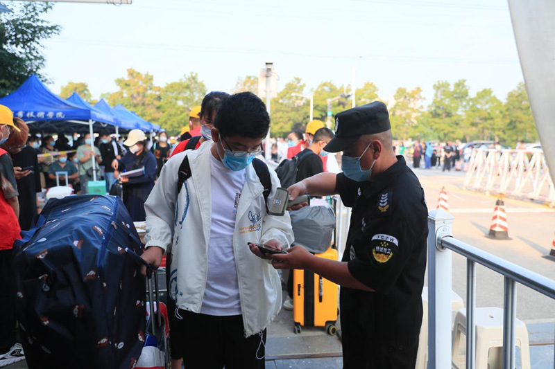 流畅通道,服务高效。今年学校继续采用“入校申请系统”,通过“线上审核,流程前置”的形式,班主任线上审核学生入校时间、行程码、健康码、核酸检测报告等工作,形成入校码,提前做好新生的流调工作,既有效简化新生报到的程序,提高入校效率,又将安全防范关口前移,保障了新生报到期间安全有序。