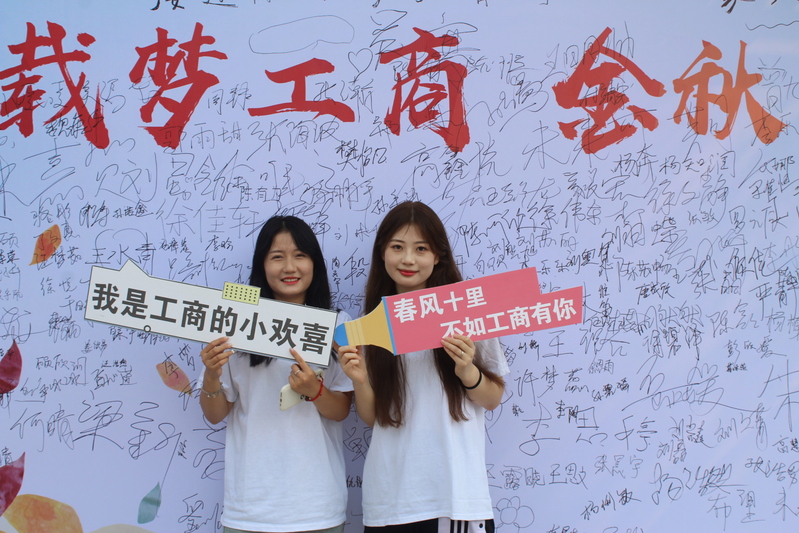 为了更好地和新生互动,营造迎新现场氛围。学院准备了迎新签字墙供新生签字、拍照留念,留下了值得回忆的“大学第一照”。“确认过眼神 是前程似锦的人”、“勤学笃志 未来可期”、“春风十里 不如工商有你”......美好的祝福对新生在大学的开始是一种鼓励,希望他们能够感受到鼓舞,继而怀揣自信,在这三年绽放绚丽的青春。