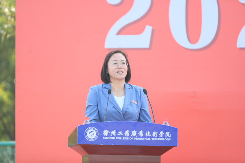 刘莹发表了题为《崇德尚技守正出新--做“有德、有技、有能、有为”的徐工院人》的讲话,代表全体师生向2022级全体新生表示热烈欢迎,向承担新生军训工作的教官表示崇高的敬意和衷心的感谢。她简要介绍了学校的历史发展和成就,并对新生提出了四点希望:第一,锤炼品德修为,涵养高尚情操,做“有德”之人。希望同学们把正确的道德认知、自觉的道德养成、积极的道德实践紧密结合起来,不断修身立德,筑牢道德根基;第二,传承工匠精神,练就过硬本领,做“有技”之人。希望同学们珍惜大学时光,以只争朝夕的精神状态增强学习本领、磨砺自我、增长才干,以勤学长知识、以苦练精技术、以创新求突破,努力成为知识型、技能型、创新型的高素质技术技能人才;第三,永葆奋斗姿态,磨练坚强意志,做“有能”之人。希望同学们成为终身的运动者、责任的担当者、问题的解决者、优雅的生活者;第四,厚植家国情怀,践行报国之志,做“有为”之人。希望同学们传承“求真、求实、求精、求新”的校训,弘扬“自强、务实、协力、争先”的学校精神,崇德尚技、守正出新,做“有德、有技、有能、有为”的徐工院人。