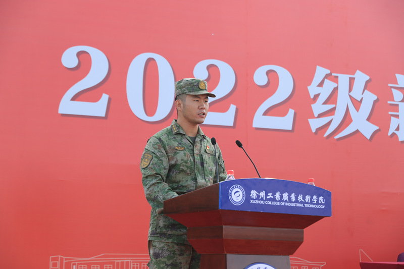 教官曹粟坤代表全体教官发言,表示全体教官将会以高昂的热情、严谨的工作作风、过硬的军事素质,确保军训任务高标准、高质量完成。