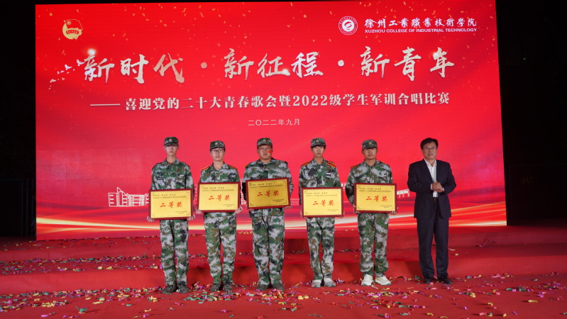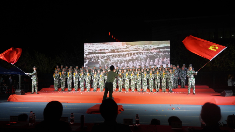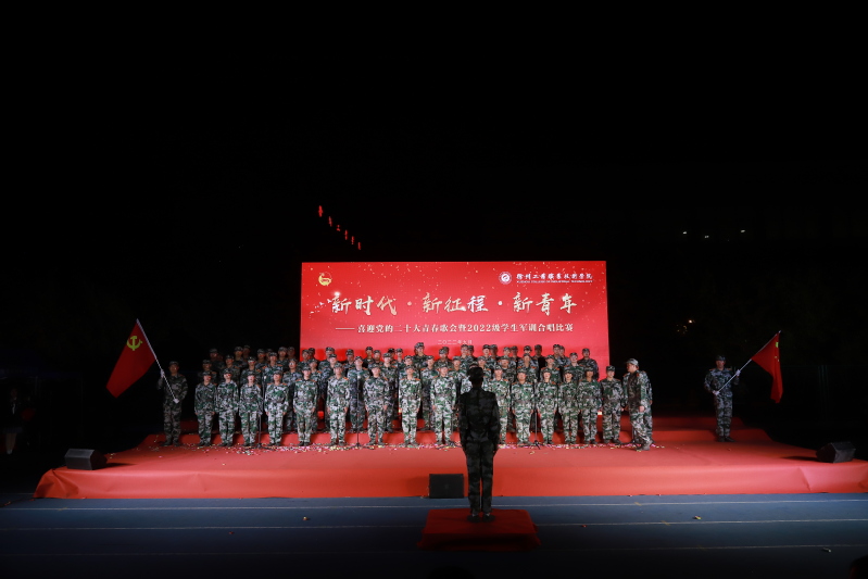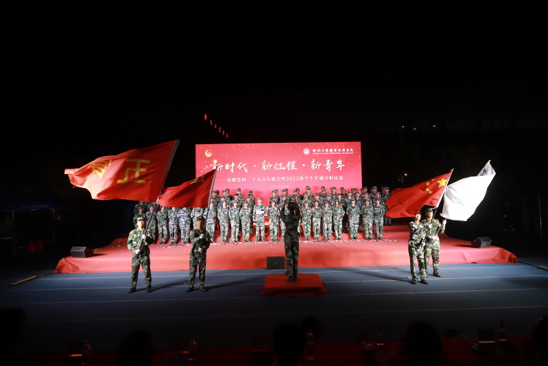 为进一步深化“喜迎二十大、永远跟党走、奋进新征程”主题教育实践活动,带动广大青年共同奏响青春旋律,抒发爱党爱国爱社会主义情怀,9月28日晚,由校武装部和团委主办的“新时代 新征程 新青年”——喜迎党的二十大青春歌会暨2022级学生军训合唱比赛在体育场拉开帷幕。校党委副书记李红,校党委组织部部长乔向东,校学工部、武装部部长阮浩、校团委书记安莹、各学院党总支书记出席比赛,各二级学院党总支副书记、学工部、武装部、团委相关老师、辅导员及全体2022级学生参加了活动。