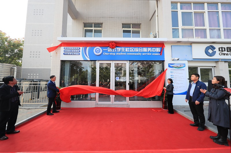 祝木伟、李红为“一站式”学生社区综合服务中心揭牌。