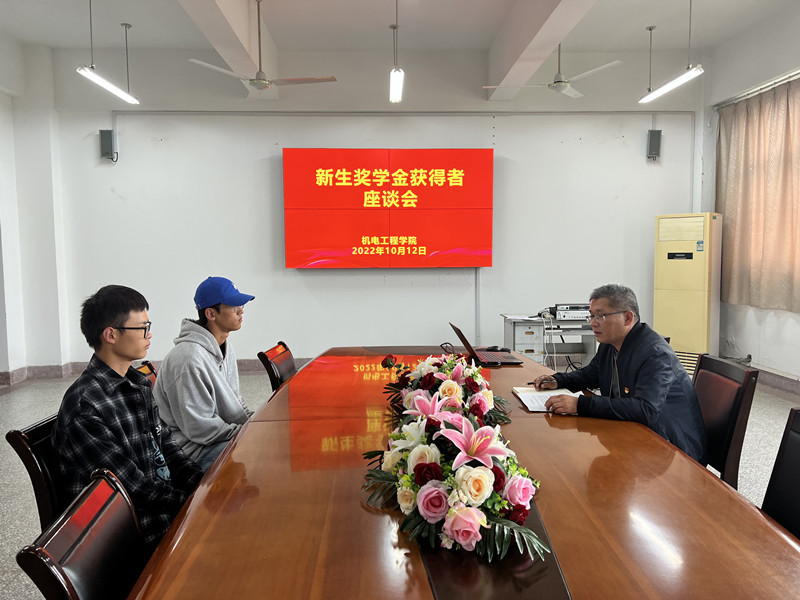 10月12日,机电工程学院召开了2022级新生奖学金获得者座谈会。学院党总支副书记王贵锋、年级辅导员王军雨与学院新生奖学金获得者机械制造2205班于海泳、机电一体化2201班秦政两位同学进行了面对面的交流。