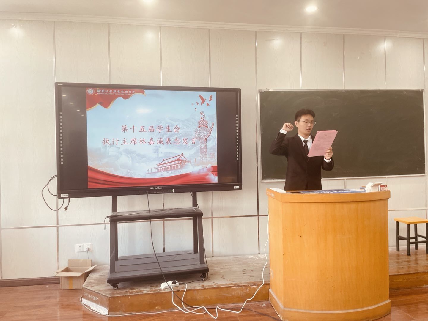 会议开始,由陈磊代表院学生会对此次大会召开致辞,提出要不断保持和增强学生会组织的政治性、先进性、群众性,鼓励全体同学要坚定信念跟党走,将小我融入大我。接着学院第一届学生会主席团成员作往年学生会工作报告,全面回顾总结了上一学年学生会的工作成绩、经验与不足并对新一届学生会的未来发展方向做了规划。