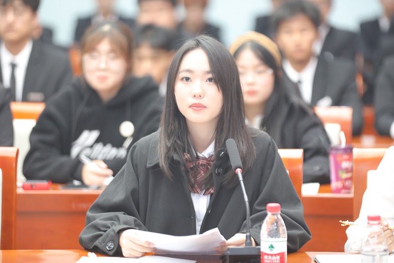 2022级新生黄恩琪同学代表全班同学发言,认为当代大学生正逢盛世,应当肩负时代赋予的使命,不负韶华,努力学习,不断突破自我,迈向人生的更高台阶,见证中华民族更加辉煌的未来,字里行间充分展示了2022级新生力量自信自强的精神风貌。