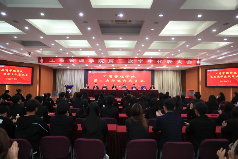 11月1日中午,工商管理学院第二次学生代表大会在图书馆报告厅召开。会议邀请校团委书记安莹、学工处副处长高强参加,学院党总支书记罗军、院长王永、副院长王志峰、副书记闫文、学院全体辅导员及学生代表参加了会议。会议由学院团总支书记曹远森主持。