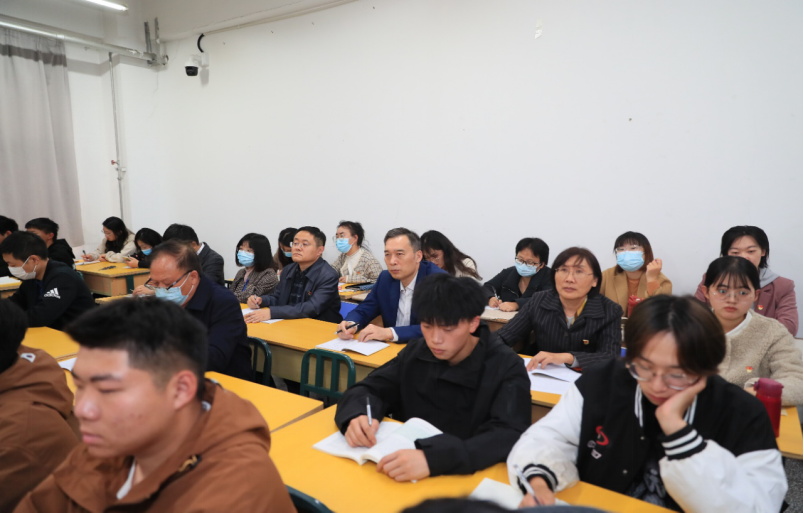 课堂上,校领导专注听取教师授课内容,仔细察看同学们的听课情况并做了详细记录。听课后,校领导与授课教师进行了亲切交流,对她们的教学设计以及课堂管理等情况给予充分肯定,对教学中存在的不足提出中肯建议,对加强思想政治理论课建设提出了指导意见:一要扎实推进习近平新时代中国特色社会主义思想和党的二十大精神进教材、进课堂、进头脑,思政课教师要在学深悟透上在下功夫、在有机融合上下功夫,立足具体授课内容广寻深挖教学契合点,切实使党的理论创新最新成果在课堂中、在学生头脑中落地生根;二要挖掘“接地气”的教学案例,用好学生“身边人、身边事”这本“活教材”,使思政课程在讲身边人、述身边事的过程中传递“大能量”,做到既有深度、又有温度;三要着眼实现思政课程信息化教学,充分运用网络教学手段和资源,丰富学生课堂参与方式、激发学生主动参与的热情;四要强化问题导向,突出教学重难点分析,坚持理论灌输与学生需求相结合,直击学生思想症结,解决学生困惑。