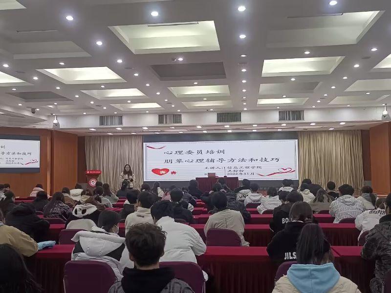 打造心理服务队伍,提升心理委员能力。为加强心理服务体系建设,提高心理委员朋辈辅导能力,信息工程学院于11月28日举办心理委员朋辈辅导培训会。心理辅导员王粉粉老师从朋辈心理辅导的方法和技巧进行宣讲,采用具体的实例让心理委员学习。此次培训使心理委员进一步明确职责定位,提高了朋辈辅导工作技巧,有助于班级心理工作扎实有效的开展。