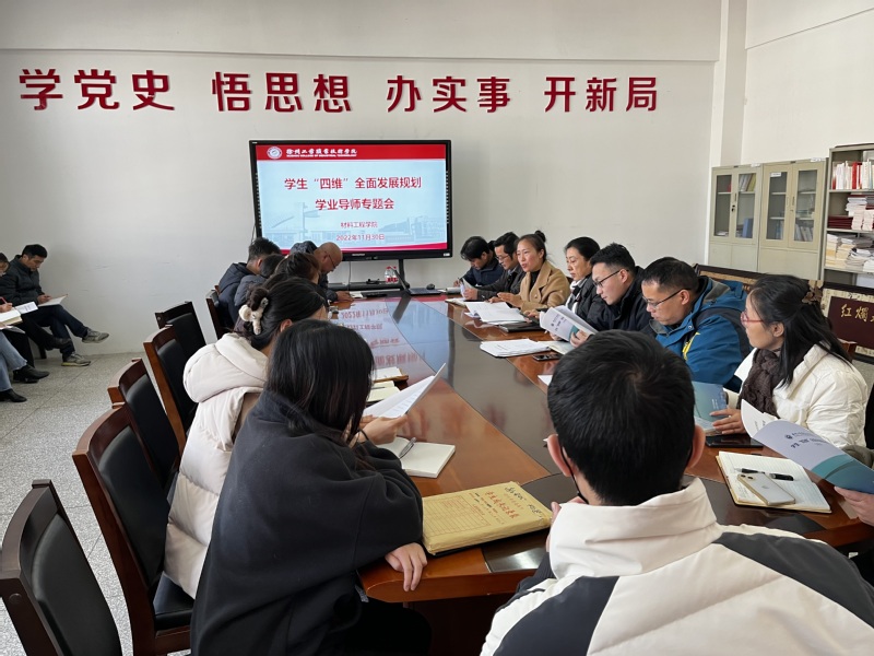 为更好地帮助学生科学规划大学学习生活,激发学生自我成长的内驱动力,强化对学生全面发展的教育指导,11月30日下午,材料工程学院在B05-306会议室召开学生“四维”全面发展规划学业导师专题会议。材料工程学院党总支书记李素婷、副院长柳峰、党总支副书记周树会、副院长丛后罗以及2020级、2021级、2022级全体学业导师、年级辅导员参加了专题会。会议由材料工程学院党总支副书记周树会主持。
