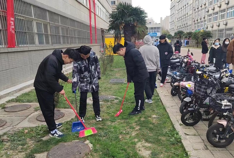 启动仪式后,同学们热情高涨,积极参与到包干区域及宿舍卫生打扫中去。有的清理落叶、有的拔草除杂。年级辅导员深入宿舍,加入学生宿舍卫生劳动,帮助学生整理被褥、消灭卫生死角等。