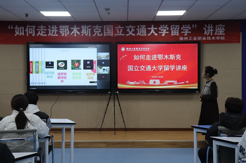 为帮助我校中俄合作办学项目机械制造与自动化专业学生明确学习目标,制定好学业生涯规划,国际教育学院邀请武汉枫雅公司俄语老师时成成和正在鄂木斯克国立交通大学留学的学生王堡澎,于11月30日在B-18楼505举办“走进鄂木斯克国立交通大学留学”讲座,本次讲座采用线上于线下相结合的方式举办。