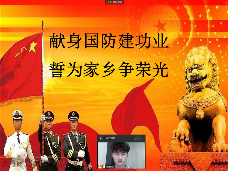 温馨贴士,生活帮扶。党员时崇、倪凯达与同学们云上连线,送出防疫温馨贴士,普及生活常识;陈崇帝、温肖肖两位退伍复学的党员同学讲述了自己在部队中的亲身经历和服役感悟,为有入伍意向的同学答疑解惑。