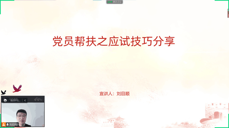 经验分享,学业帮扶。党员刘目顺、曹鹏通过线上的方式,向22级同学们分享自己的学习经验和应试技巧。两位同学分别谈到,大学需要提升的是自主学习能力,兴趣是最好的老师,大家应该发掘自己在专业中的兴趣爱好点,从“要我学”转变为“我要学”;随后,两位同学还对如何有效获取学习信息、如何提高考试复习有效性、英语四级应试技巧进行了分享交流。