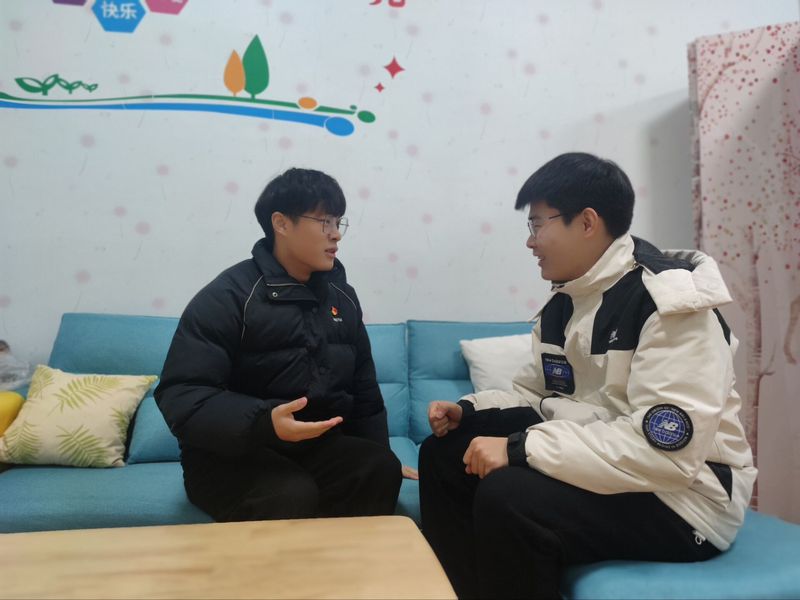 朋辈辅导,心理帮扶。党员丁浩在校备战技能大赛之余,以朋辈的身份,面对面与22级同学谈心交流。他从自己的成长经历谈起,舒缓新生心理压力,从精神上给予鼓舞,帮助同学们坚定信心,直面大学学习和生活中的挑战与挫折。
