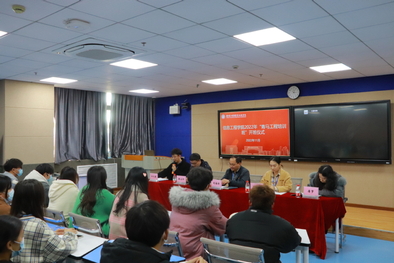为进一步深化学院青年大学生党史学习教育,按照团中央《“青年马克思主义者培养工程”实施纲要》和校团委工作部署,信息工程学院于2022年11月25日举行“青马工程培训班”开班仪式。学院党总支书记刘海涛,党总支副书记韩永印,辅导员唐梦、张伊凡及全体青马班学院参加,会议由团总支书记任大蔚主持。