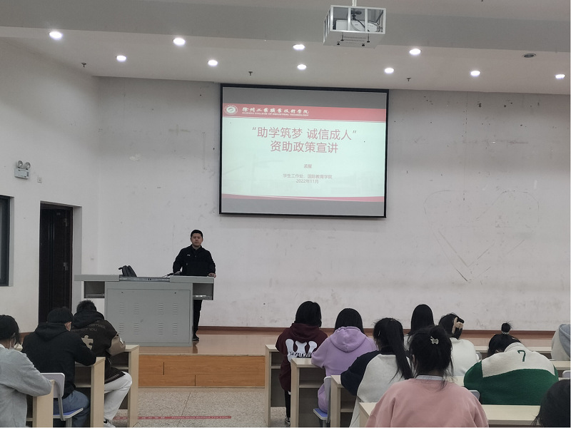 为落实立德树人根本任务,坚持把促进家庭经济困难学生成长成才作为学生资助工作的出发点和落脚点,加强对困难学生的帮扶政策宣传,加强受资助学生的诚信教育,我校近日面向全校学生开展了“助学筑梦 诚信成人”资助政策宣讲活动。本次活动由学工处主办,国际教育学院承办。